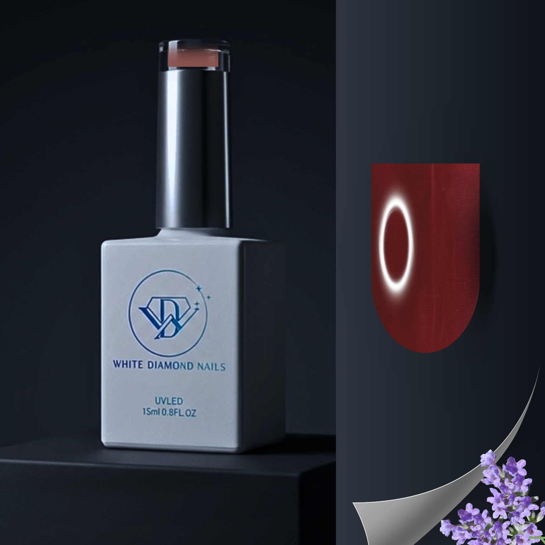 Immerse your nails in the rich, sophisticated tones of Scarlet Wine, a captivating deep red gel polish infused with a soothing lavender scent.
