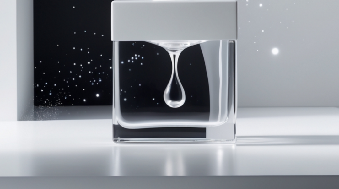 Clear gel drop on white square gel bottle with elegant shimmer background from White Diamond Nails
